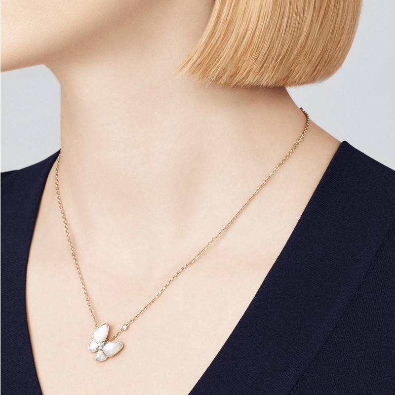 Van Cleef & Arpels Classic Deux Papillons Women's White Mother of Pearl Two Butterfly Necklace VCARO8FO00