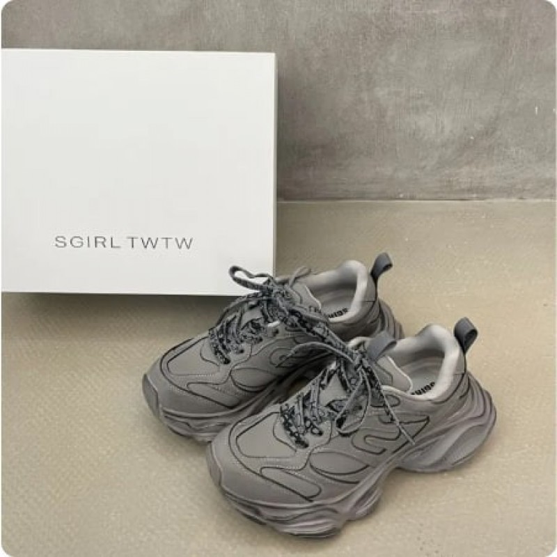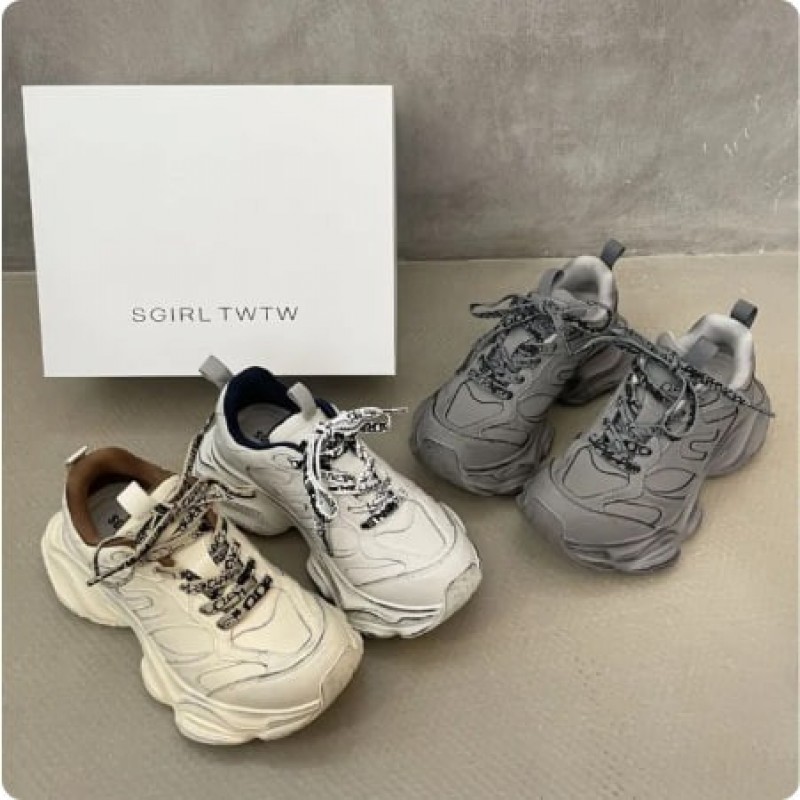 SGirl TWTW Dad Shoes Women's Thick Bottom Heightening Sports Shoes Casual round Toe Ultra-Leather Summer Breathable Slip-On