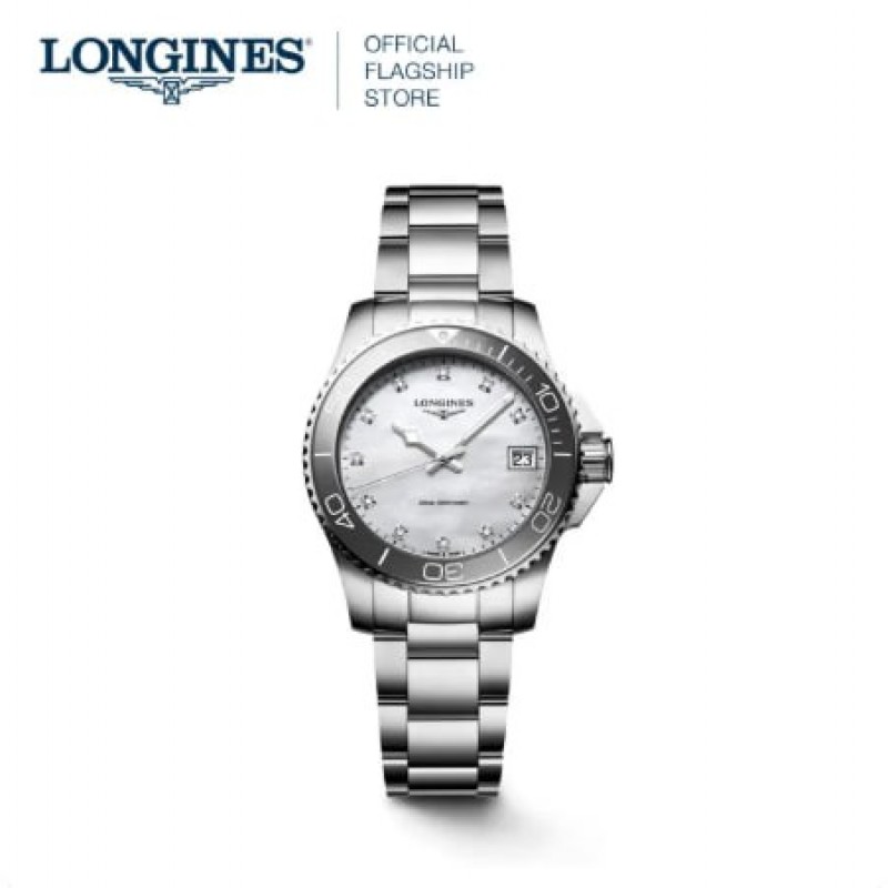 LONGINES HYDROCONQUEST 32MM MOTHER OF PEARL STAINLESS STEEL CERAMIC BEZEL QUARTZ WOMEN'S WATCH 521000.0 |