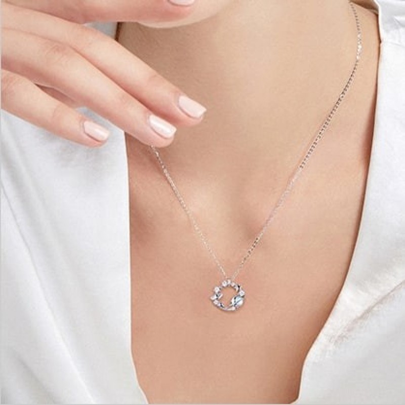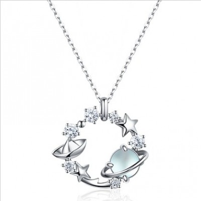 Collar con colgante de cadena de clavícula de plata 925 con dise?o de planeta Lianlian y piedra de cristal azul de Fanci Fan Qi