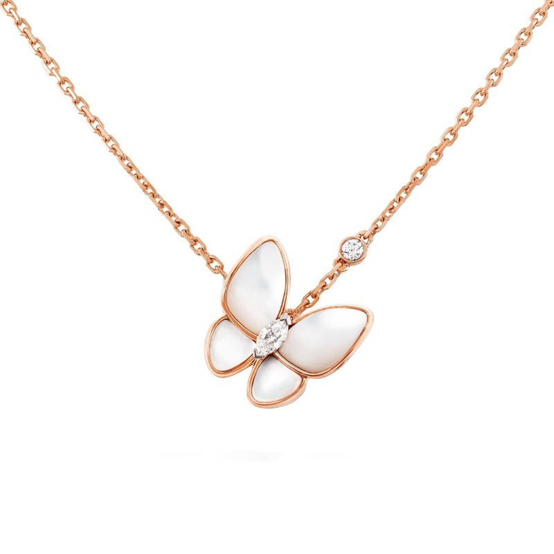 Van Cleef & Arpels Classic Deux Papillons Women's White Mother of Pearl Two Butterfly Necklace VCARO8FO00