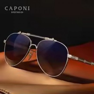 CAPONI-gafas de sol polarizadas de nailon HD para hombre, lentes de sol con gradiente de titanio puro, UV400, estilo piloto, para exteriores, CP7537