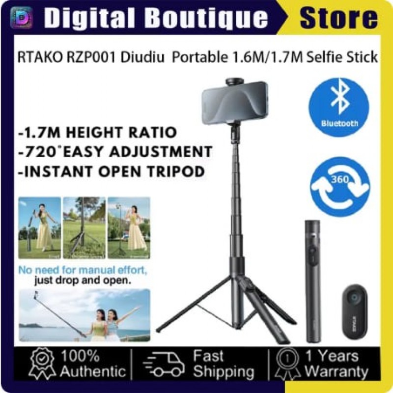 RTAKO RZP-001 AB226 1.7M Diudiu Multifunctional Ultra-Wide 720° Bluetooth Selfie Stick Floor Pop-Up Tripod Phone Holder