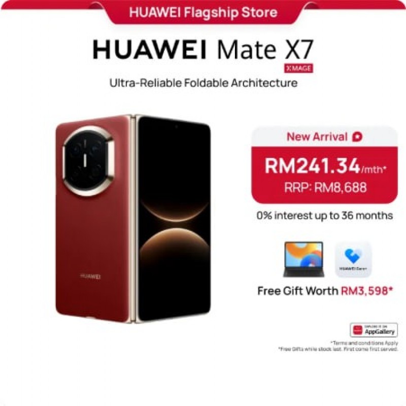 HUAWEI Mate X7 Telefon Pintar Boleh Lipat 16+512GB | Paparan Boleh Lipat Sangat Boleh Dipercayai | Kamera True-to-Colour | Bateri Besar 5600 mAh