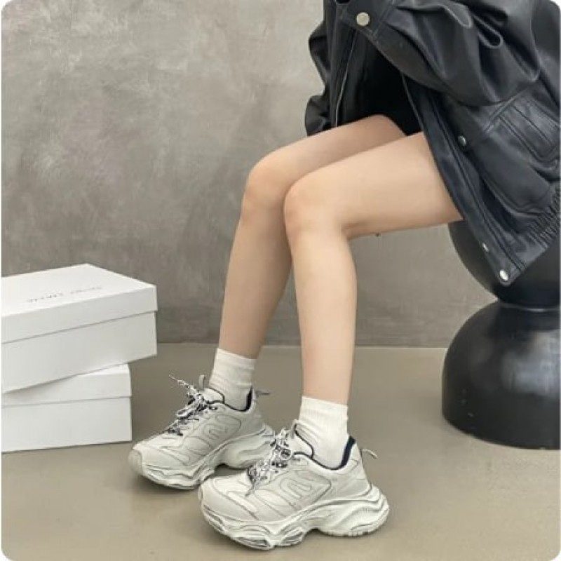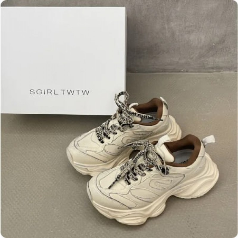 SGirl TWTW Dad Shoes Women's Thick Bottom Heightening Sports Shoes Casual round Toe Ultra-Leather Summer Breathable Slip-On