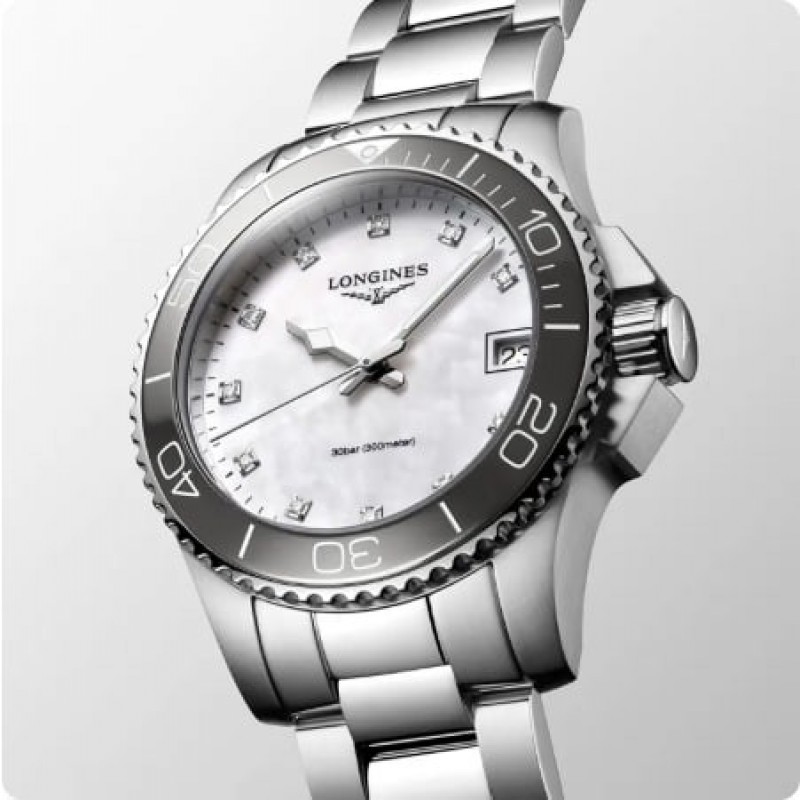 LONGINES HYDROCONQUEST 32MM MOTHER OF PEARL STAINLESS STEEL CERAMIC BEZEL QUARTZ WOMEN'S WATCH 521000.0 |